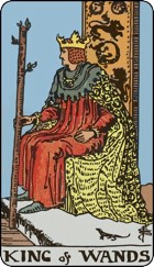 Vị Hoàng đế này sẵn sàng bước lên phía trước để lãnh đạo nếu thấy đó là cơ hội tốt để thành công, vì thế những kẻ khác đều nghe lời ông răm rắp và an tâm nghe theo sự sắp đặt khôn ngoan của ông. Mặc dù luôn mạnh mẽ để theo đuổi mục tiêu, nhưng nếu cần thiết, King of Wands có thể biến thành một người quan sát lặng lẽ và thụ động. Vị Quốc vương này chính là người hành động để tạo ra kết quả.