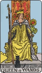 Năng lượng và sự nhiệt tình luôn ở mức tối đa giúp nàng giải quyết mọi vấn đề một cách toàn tâm toàn ý và không gì có thể làm nàng nản chí. Queen of Wands luôn lạc quan vui vẻ để nhìn nhận mặt tích cực của vấn đề. Cuộc sống của một vị Nữ vương luôn bận rộn nhưng nàng thích như vậy, cho đi và cống hiến.