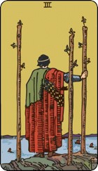 Three of Wands thể hiện cho sự tiến bộ, và khi giấc mơ ấp ủ bao lâu nay biến thành sự thật bạn sẽ cảm thấy tự hào và tràn đầy sức sống. Tuy nhiên, trước khi chính thức khởi hành, bạn nên chờ cho đến khi con thuyền xuất hiện và cập bến, đừng vội vàng và chớ khoe khoang. Đặt niềm tin vào bản thân, dang rộng đôi cánh và trải nghiệm cuộc sống. Three of Wands sẽ cho bạn biết rằng vận may sẽ không bỏ rơi những người dũng cảm.